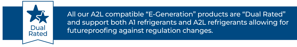 Our dual leak detection and 24 volt mitigation system exceeds the required standards and incorporates high quality safety mechanisms required for A2L refrigerants.
